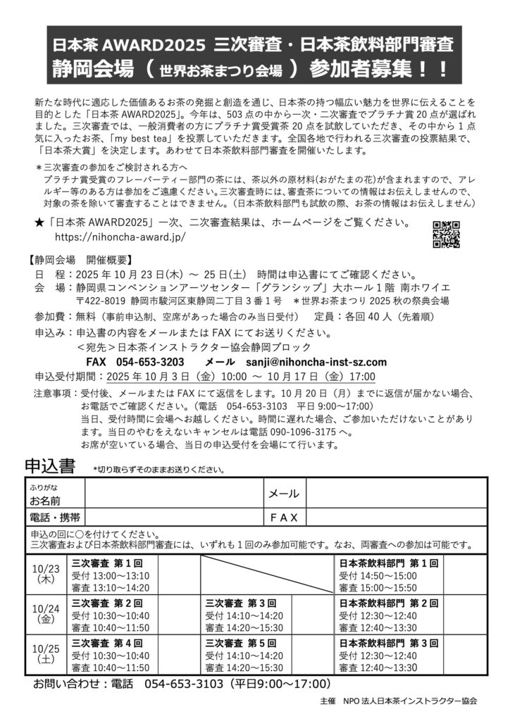 FAX 054-653-3203 メール sanji@nihoncha-inst-sz.com